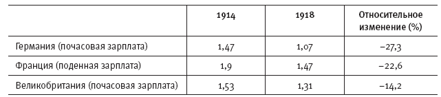 Таблица 27. Промышленное производство и реальная заработная плата в Германии и Великобритании (1914–1918 гг.)