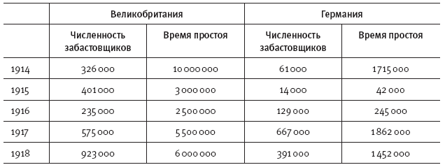 Таблица 30. Забастовки в Великобритании и Германии (1914–1918 гг.)