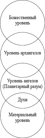 Вселенная состоит из духовной субстанции, вибрирующей с различными частотами. Самая низкая частота характерна для материи, или мира, который мы видим вокруг себя, а самая высокая – для чистого духа. Существует множество различных уровней, на которых работает эта энергия, но, в сущности, способ выражения одного и того же явления на различных уровнях во многом аналогичен тому, как проявляется электричество в лампочке искусственного освещения и в телевизоре. Ради простоты оккультисты распределяют эту энергию по четырем особым уровням или мирам. Первый мир – Божественный, второй – архетипический, третий – мир формирования и, наконец, последний – материальный[11]11