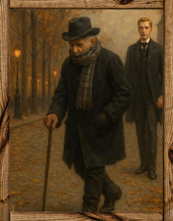 И правда: через пару минут дедок вышел из подъезда в темном пальто, высоких ботинках и с кашне на шее, скрывавшем половину лица. Оглянулся подозрительно, точно чуял слежку, шляпу надвинул пониже на глаза, примяв тулью с зеленой атласной лентой, и отнюдь не старческой походкой заспешил через арку на улицу.
