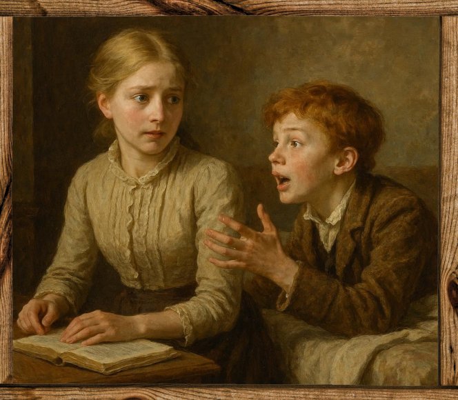 Хотела за уроки сразу сесть, а тут Ванька к ней поскребся. Вид у братца тоже был невеселый.