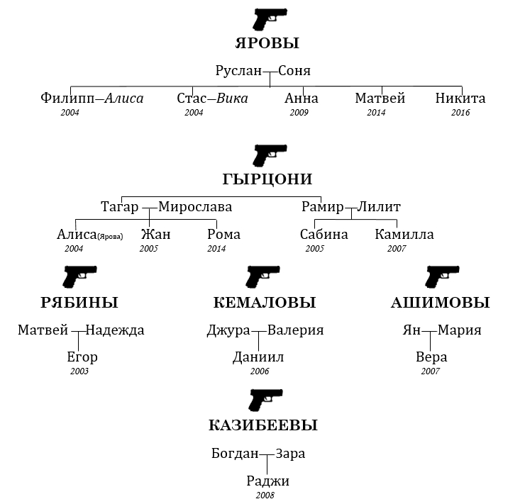 Женщины расставили всю еду на столе и пригласили нас присаживаться. Я старался держаться ближе к Яровым. Наши отношения с семьей Гырцони были чертовски натянутыми. Все из-за того, что Фил поцеловал дочку Тагара в детском лагере. Заместитель раньше принадлежал традиционной цыганской семье, поэтому этот поступок свел мужика с ума. Если бы не отец Фила, то все могло закончиться плачевно для всей группировки.