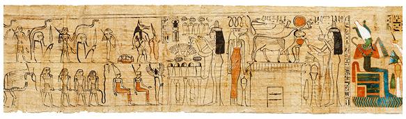 Фрагмент «Книги Мертвых» певицы Амона Нани. Нани перед Осирисом, Исидой и Нефтис. III Переходный период, ок. 1050 г. до н. э.