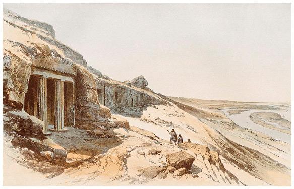 Lepsius, Richard (Author); Graeb, Carl (Artist); Erbkam, Georg Gustav (Surveyor); Loeillot, W. (Lithographer). Felsengrab von Benihassan [Banî.Hasan Site]. Nicolaische Buchhandlung, Berlin. 1849–1856. From The New York Public Library Digital Collection