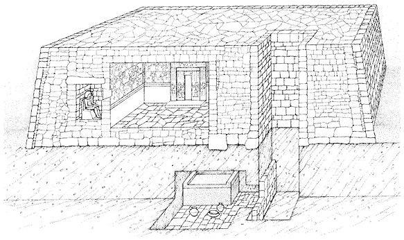 В надземной части имелась пристройка или вырезанное в кладке помещение – молельня для совершения поминального культа. Погребальная камера с телом царя, окруженная множеством других помещений, содержащих погребальный инвентарь и дары для снабжения и кормления царя в ином мире, размещалась под землей и опечатывалась после похорон. Так были устроены погребения царей и их приближенных вплоть до III династии. Царские родственники и вельможи продолжали использовать форму мастабы для своих гробниц вплоть до конца Древнего царства.