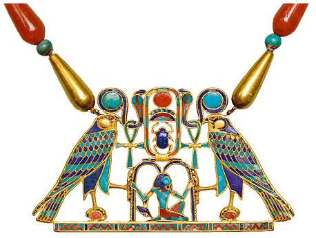 Пектораль Сат-Хатхор-Иунет с картушем Сенусерта II. Лахун, XII династия, ок. 1887–1878 гг. до н. э. Золото, сердолик, полевой шпат, бирюза, лазурит.