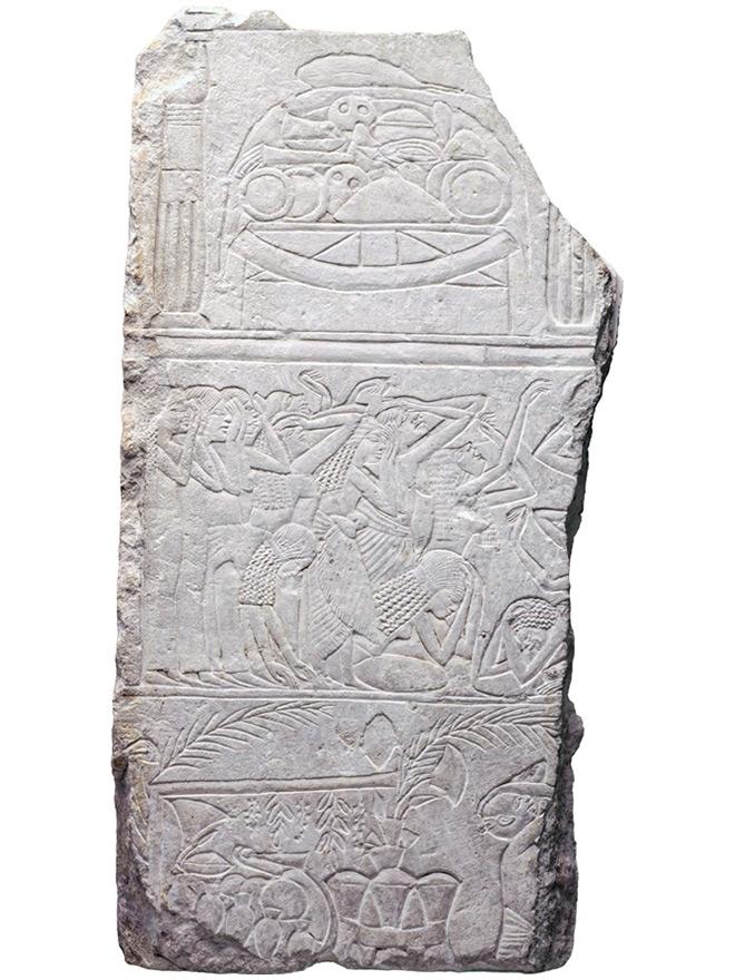 Фрагмент гробничного рельефа с изображением плакальщиц в среднем регистре и продуктовых подношений. Ок. 1340 г. до н. э.