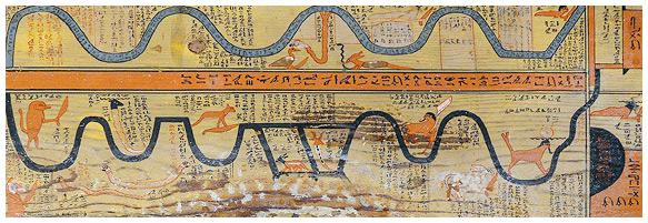 Эпоха Среднего царства делает новый шаг в моделировании иного мира для покойного, чтобы он с успехом миновал его угрозы. Создается впечатление, что чем больше египетские мудрецы и богословы погружались в эту тему, чем подробнее могли описать устройство Дуата, тем больше грозивших гибелью западней, ловушек и опасных обитателей они там примечали.