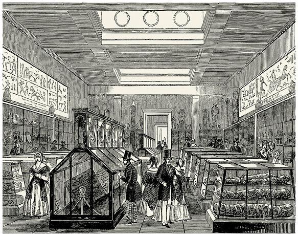 Британский музей. Зал мумий. Гравюра, 1847 г.