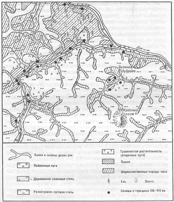 Эта малоэффективная система земледелия вряд ли получила широкое распространение в лесостепных ландшафтах района Непрядвы, богатого плодородными черноземными почвами. Однако существование здесь в XIII–XIV веках очагов подсечной системы свидетельствует, что в это время не произошло еще «полного отказа от подсеки» за счет повсеместного перехода Северо-Восточной Руси к пашенному земледелию[48]48