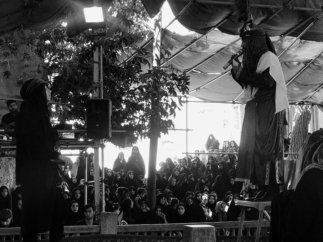 Каждый год в Иране наступают дни, когда сложно поверить, что здесь вообще встречаются неверующие. В эти дни улицы городов преображаются, и чем традиционнее регион, тем сильнее меняется все вокруг. На севере Тегерана, где живут самые зажиточные иранцы, все остается примерно таким же, разве что местами можно увидеть палатки, где бесплатно разливают чай. Зато в гораздо более бедном и традиционном Кашане центральные районы сплошь завешаны черными знаменами, а на многих улицах появляются декорации, изображающие иранскую пустыню в ранние средние века: песчаные колодцы, глиняные хижины, декоративные пальмы.