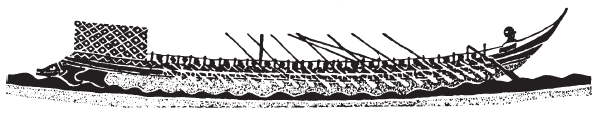 Пентеконтера в море. С аттической чернофигурной вазы работы Эксекия. Ок. 525–500 гг. (парус на росписи не изображен)