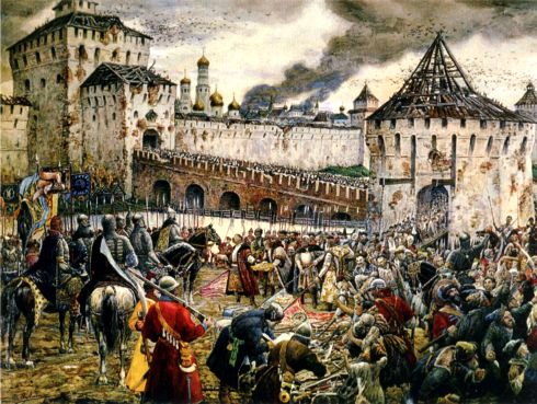 Столица мало напоминала себя прежнюю. Значительная часть города лежала в руинах. Польско-литовский гарнизон размещался в Кремле и Китай-городе, осажденный силами Первого ополчения – войском Трубецкого и Заруцкого. Этому войску не хватало дисциплины: конфликты между дворянами и казаками привели к тому, что первые его покидали, и оно становилось в значительной степени казацким. Выбить противника у Трубецкого и Заруцкого не получилось, но удалось лишить его продовольствия. Ко времени прихода Пожарского в Кремле голод среди осажденных давал о себе знать. Осажденные ели мышей, крыс, ворон, пергаментные книги и, наконец, людей. Общие потери от каннибализма к концу московской эпопеи, по данным польского историка Т. Бохуна, составили 250–280 солдат и офицеров. Конечно, в конце августа 1612 г. пока еще все было не настолько ужасно, но физических сил у противника становилось все меньше.