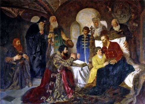 Больной князь Дмитрий Пожарский принимает московских послов. Котабинский В. А.