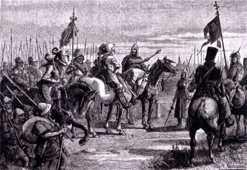 Князь Михаил Скопин-Шуйский встречает шведского воеводу Делагарди близ Новгорода. 1609 г.