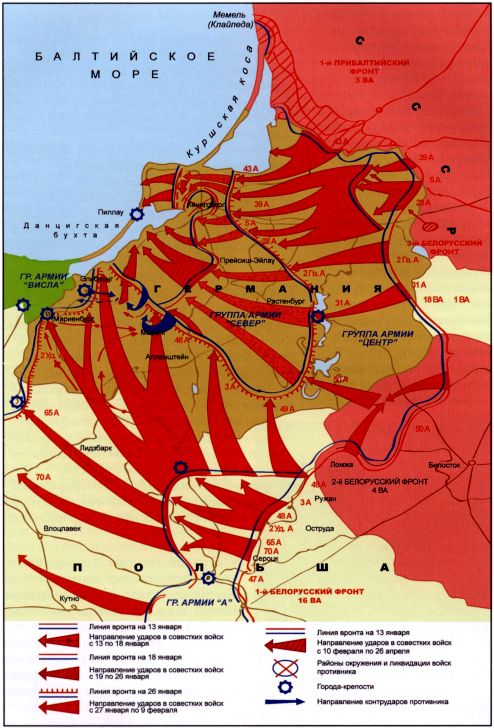 В 1944 г. в ходе освобождения Крыма Василевский координировал действия 4-го Украинского фронта, отдельной Приморской армии, сил Черноморского флота и Азовской военной флотилии; при освобождении Правобережной Украины – действия 3-го и 4-го Украинских фронтов; при освобождении Белоруссии (операция «Багратион») и Прибалтийских республик – действия 3-го и 2-го Белорусских фронтов, 1-го и 2-го Прибалтийских фронтов.