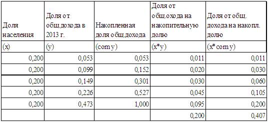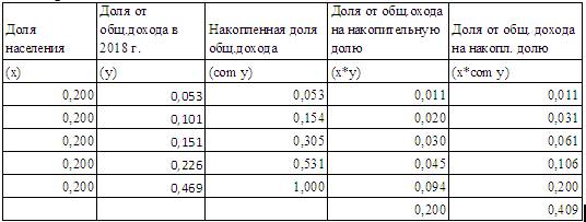А теперь всё сведём в таблицу для расчёта коэффициента Джини: