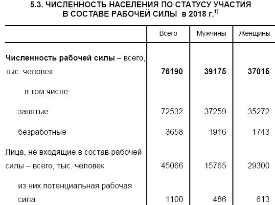 Кроме того, посмотрим на таблицу 5.3 «Рабочая сила по статусу участия в составе рабочей силы в 2018 г.»: