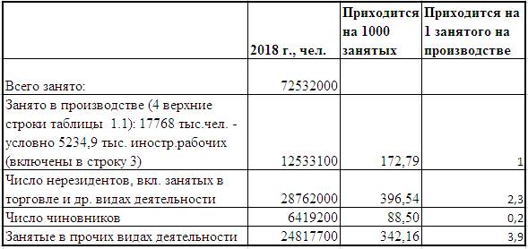 Таким образом, по числу чиновников цифра совсем теряется. Сколько же их на самом деле? Кроме того, мы знаем, что на нашем рынке занята целая армия иностранных рабочих. Поскольку это никак не отражено в таблице, то вся информация плывёт из-за отсутствия точных сведений.