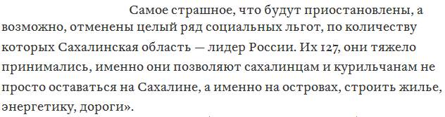 Отсутствие работы и сущие гроши в качестве заработка – это реальная проблема в стране, которую не решить путём субсидий, пособий, материнского капитала… Свидетельством тому то, что в стране из 85 регионов только 12 не являются дотационными: много потерь из-за простоя потенциальной рабочей силы, низкая зарплата или её отсутствие вовсе… Результат – нет отчислений в бюджет и социальные фонды. Возьмём не самый проблемный регион – Сахалинская область. Не самый проблемный потому, что там нефть. А задаться вопросом – чем, на какие средства там живёт население? Здесь только 13% жилых домов обеспечены газом (среднероссийский уровень – 66%). Регион выживает благодаря льготам. Вот что говорил председатель Сахалинской областной Думы и писали местные СМИ по поводу возможного перераспределения доходов от нефти в пользу федерального центра: