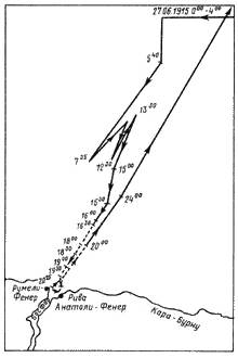 Карта похода "Краба" к Босфору. 25-29 июня 1915 г