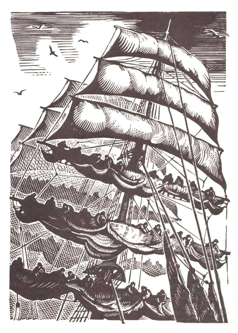 Курсанты и матросы разбежались по местам, и через три минуты льняные крылья судна поднялись вверх и красивыми складками неподвижно повисли под реями.