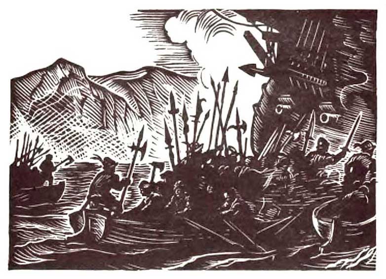 Через полчаса тьма впереди сгустилась, стали видны тяжелые обводы турецких кораблей. Еще несколько бесшумных гребков – и над головами запорожцев нависли крутые борта фрегатов Гассан-паши.