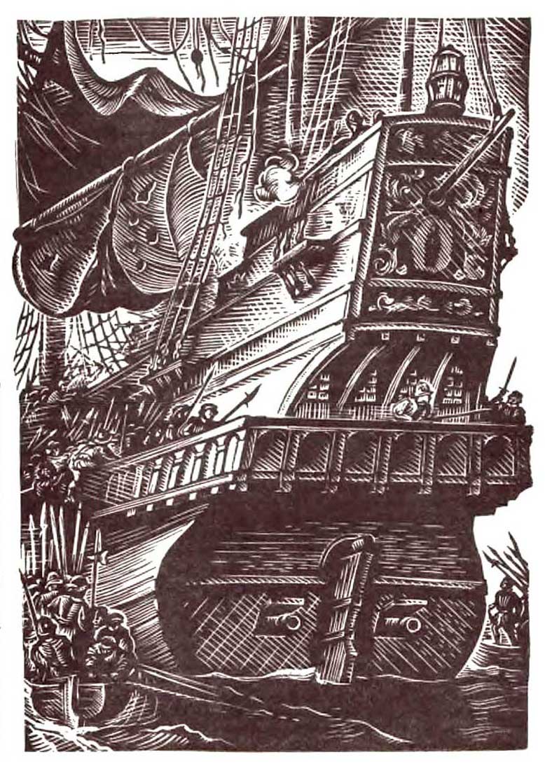 Перебирая руками по доскам обшивки, все трое вели ялик вдоль корпуса флагманского турецкого корабля.