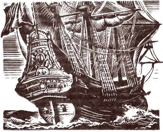 Все три мачты несли большие паруса, и когда они наполнялись ветром, галионы выглядели очень красиво.