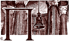 Здесь же, в центре зала, под сводом, опирающимся на четыре колонны, висит медный колокол, начищенный до золотого блеска. Это – судовая рында[17]17