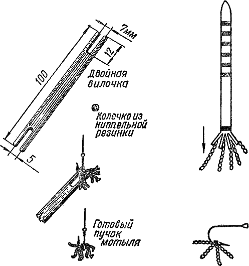 Рис. 34. Мотыль в колечке из ниппельной резинки.