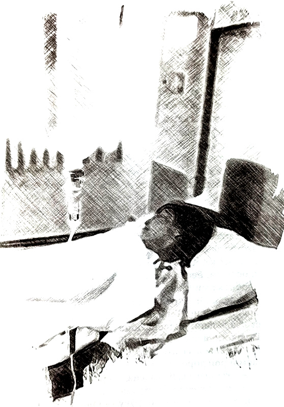 Ольга лежала на ближней к окну кровати. Шторы в палате оставались открыты, в окно светило солнце, в ее углу горели блики. Голова плотно забинтована, лицо заострилось, ярко очертились скулы, под глазами чернели круги. Левая рука зафиксирована бандажом в согнутом положении. Белок одного глаза кроваво-красный от лопнувших сосудов. Неузнаваемость образа довершал застиранный больничный халат в мелкий синий цветочек. Рядом с кроватью стояла тумбочка, на ней – нищенски одинокая чашка, иконка Божией Матери и больше ничего, кроме солнечных зайчиков.