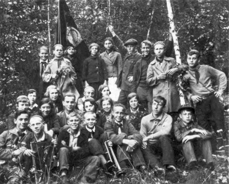 В пионерском лагере. В первом ряду, четвертый слева – Петя Плешаков