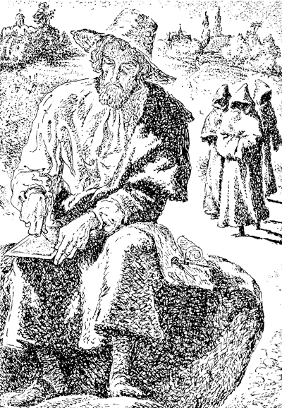 Капюшоны удалились. А печатник вновь взял в руки резец и доску. Он работал почти дотемна. И улыбался каким-то своим мыслям.