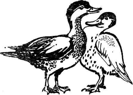 Ласки утки становились все нежнее и усерднее. Селезень жмурился от удовольствия и подрагивал своим коротким хвостом. Вдруг послышался резкий свист крыльев. Самец привстал, тревожно вытянул шею и поглядел на небо. Над ними вился крупный селезень. Хорошо было слышно, как при взмахе крыльев трутся друг о друга его жесткие перья. Это был вдовец или брошенный подружкой самец, который задумал отбить у него возлюбленную.