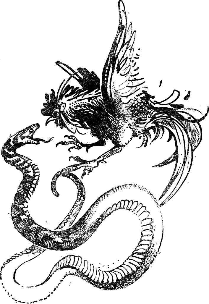 И тут, собрав последние силы, в порыве смертного отчаяния петух клюнул полоза во второй глаз. Змеиные кольца разжались, хвост забился о землю. От одного из этих ударов нога обомлевшего петуха хрустнула, и больше он уже не мог на нее ступить. Хромая, падая, умирая, петух яростно и стремительно клевал своего врага, сам получал жестокие удары, драл полоза когтями…