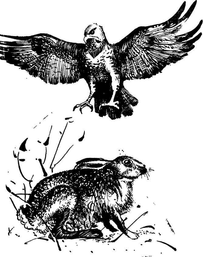 Он пролежал целую неделю, почти не двигаясь, утоляя жажду каплями росы, а голод – ростками трав, недоверчиво глядя вокруг и прядая ушами. Ястребиные перья распушились (он замечал, что, когда птица умирает, перья на ней начинают торчать дыбом), постепенно от пучка ничего не осталось, но место, где птичья нога вонзилась в спину, начало гноиться. Заяц вертелся, извивался, стараясь достать рану языком, но все усилия были тщетны, ему ни разу не удалось дотянуться до нее. Шерстка вокруг свалялась, облезла, и кожа побелела на проплешине, будто присыпанная снегом.