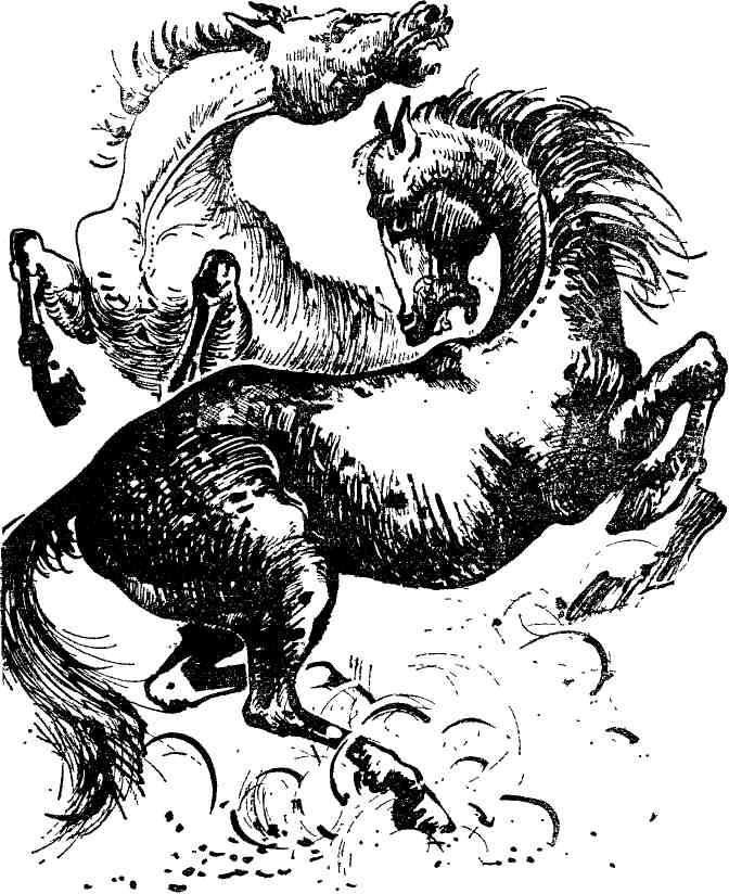 Когда до табуна оставалось не более трехсот шагов, навстречу показался вороной. Он скакал во весь опор, грива и хвост развевались на ветру. Противники не стали терять времени – принюхиваться, рыть копытом землю, гневно ржать. Подхлестываемые лютой ненавистью, они ринулись в бей. С плотно прижатыми к голове ушами, с оскаленными острыми зубами, они то взвивались на дыбы, точно боксеры на ринге, то падали на колени, норовя побольнее укусить друг друга. Поединок длился долго – безмолвный, ожесточенный. Шерсть жеребцов поумнела от пота и крови.