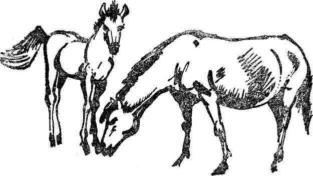 Травы в поле хоть отбавляй, и у жеребца, как и у кобыл, шерсть лоснится, отливая синевой, как вороново крыло. Он все глядит куда-то вдаль, зажав губами пучок травы. Ноздри его подрагивают, под кожей вздуваются набрякшие, словно пиявки, жилы; стройное туловище напряжено, бьющая через край сила вот-вот сорвет его с места. Рядом покачиваются высокие стебли коровяка, усеянные крупными желтыми цветами, чуть поодаль стоят стеной кусты репейника, а за ним раскинулся широкий простор…