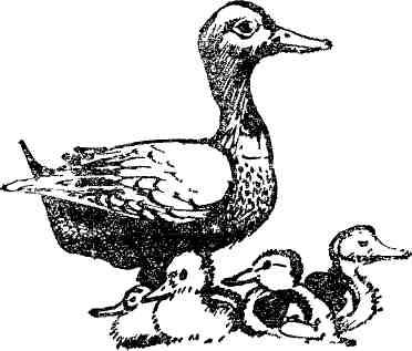 Но пока утята, черненькие с желтыми отметинами и широким клювиком лопаткой, клевали отруби, серая утица держалась в сторонке.