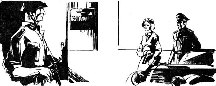 Черный «опель» заскрипел тормозами, остановился. Комендант с важностью открыл дверцы кабины. Оксана молча пошла вперед, мимо молоденького часового, застывшего у входа с автоматом на груди, застучала туфельками по ступенькам высокого крыльца.