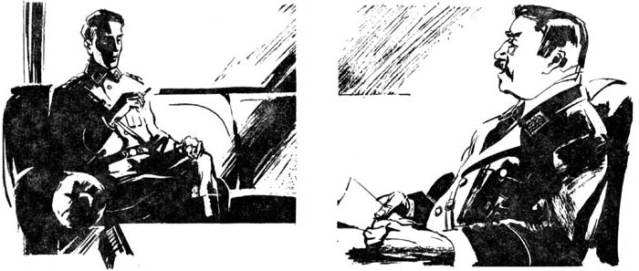 – Ну что же. Сделайте заключительный допрос. Если он не признается, отпустите, но возьмите под специальное наблюдение. Ему скажите, пусть благодарит фрейлейн Оксану. Таким образом, мы поймаем, как это говорится, сразу двух зайцев. Удовлетворим просьбу девочки, и, наблюдая за Го… Го… Годуном, можем напасть на след, который принесет нам больше пользы, чем традиционный допрос.