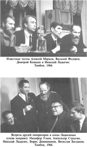 В одну из своих последних поездок в Москву, в 1974 году, отец был в гостях у Егора Исаева, который подарил ему свою книгу «Суд памяти» с автографом: «Николаю Ивановичу Ладыгину – Человеку, с которым просто по душе, а по делу сложно. Как тут быть? Пусть Бог рассудит. С уважением искренне Ваш Егор Исаев. 26/IV-74». Через год отца не стало, а немного позднее, 1 января 1979 года, в газете «Комсомольская правда» вышла статья А. Левиной «А роза упала на лапу Азора» о папиных стихах. После этого мы, его дети, живущие в Тамбове, решили организовать творческий вечер поэта Ладыгина. Нас поддержали близкие друзья отца – Двинянинов и Милосердов. Во время подготовки к вечеру возникла проблема: кто сможет хорошо и профессионально прочесть палиндромические стихи? Мы пригласили из Москвы артиста Вячеслава Кузнецова, который любезно откликнулся на нашу просьбу.