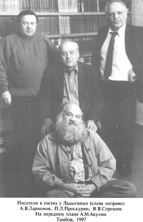 В то время мы познакомились с молодым тамбовским филологом Сергеем Бирюковым, который, вдохновившись творчеством отца, написал ряд статей и опубликовал их в альманахе «Поэзия» (1987, № 48) и журналах «Волга» (1988, № 7), «В мире книг» (1988, № 4), «Слово» (1998, № 3). К великому сожалению, отец не прочел этих публикаций. Вместо него мы, его дети, хотим выразить искреннюю благодарность Сергею Бирюкову, который вывел палиндромы Ладыгина в большую печать. Если бы не он, то лежали бы стихи отца в тумбочке и неизвестно, были бы они когда-нибудь опубликованы.