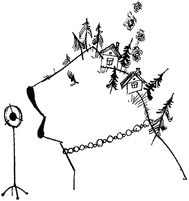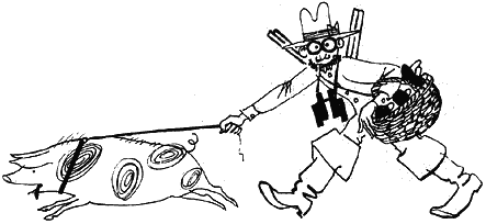Пиф-Паф смотрел на меня, и ему представлялась удивительная далёкая земля, где живут люди с короткими шеями, где мужчины носят брюки, где волки нападают на овец, а козлы грызут капусту.