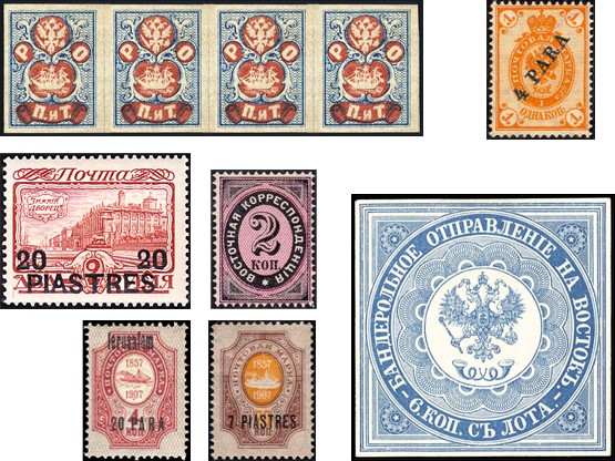 Россия, так же как и другие европейские государства (Великобритания, Германия, Австрия и т. д.) имела разветвленную сеть почтовых учреждений в некоторых зарубежных странах, обслуживавших как русских так и иностранных подданных. Число русских почтовых отделений за границей (по последним исследованиям) даже превосходило число английских (Великобритания обладала наиболее обширной системой почтовых учреждений в мире.)