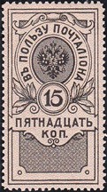 В 1909 было установлено, что судебные учреждения могут устанавливать связь с тяжущимися сторонами с помощью почты, причем кроме обычной платы за пересылку почтовых отправлений с получателя взыскивалось еще 15 коп. в пользу почтальона с помощью специальной т. н. судебно-почтовой марки, которая наклеивалась на почтовое отправление и гасилась обычным путем. Для этого в 1909 на гербовой марке в 15 коп. была сделана надпечатка «В пользу почтальона», а в 1910 была выпущена специальная марка с такой надписью. Большой интерес служебные марки представляют на целых вещах.