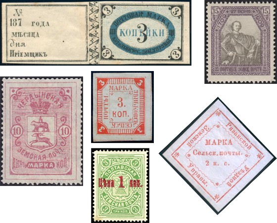 Земские почтовые марки печатались до 1870 в большинстве случаев очень примитивно, вручную с помощью различных штампов, К ним относятся марки Богучарского, Демянского, Крапивенского и других уездов.