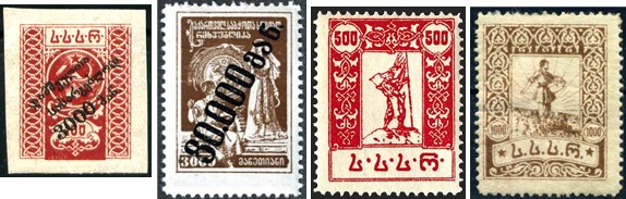 В апреле 1922 были выпущены почтово-благотворительные марки в пользу голодающих Поволжья и крестьян Грузии. На невыпущенных марках Грузинской ССР были сделаны надпечатки текста на грузинском языке и новой стоимости. Марки с зубцами и без зубцов. Много разновидностей. Беззубцовые марки существуют и без надпечаток, однако в почтовом обращении не были. Известны фальсификаты.