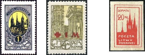 В ноябре 1920 на марках Литвы была сделана надпечатка новой стоимости, герба и надписи (польский) «Центральная Литва. Почта». Тираж 283 полных серий. Существуют фальсификаты и новоделы. В декабре выпущена серия из 6 стандартных марок. Выпуск марок продолжался до 1922. Были выпущены стандартные, доплатные, благотворительные и памятные марки. Все марки оригинальных рисунков выпущены с зубцами и без зубцов. Существуют пробные экземпляры в других цветах, а также различные опечатки, зубцовки, оттенки. Были выпущены и почтовые карточки.